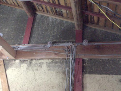 既存の配線です。いくら隠れてしまう場所とはいえグチャグチャです。