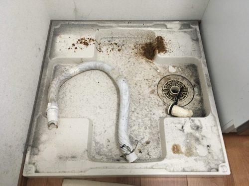 それは、こんな事になっている洗濯パンと下水ニオイ防止の排水トラップを完全清掃させていただく事です。