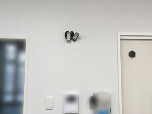 角度固定の壁掛け金具でしたが、取付位置が高いので少し工夫をして10度程度下向きに取付けさせて頂きました。